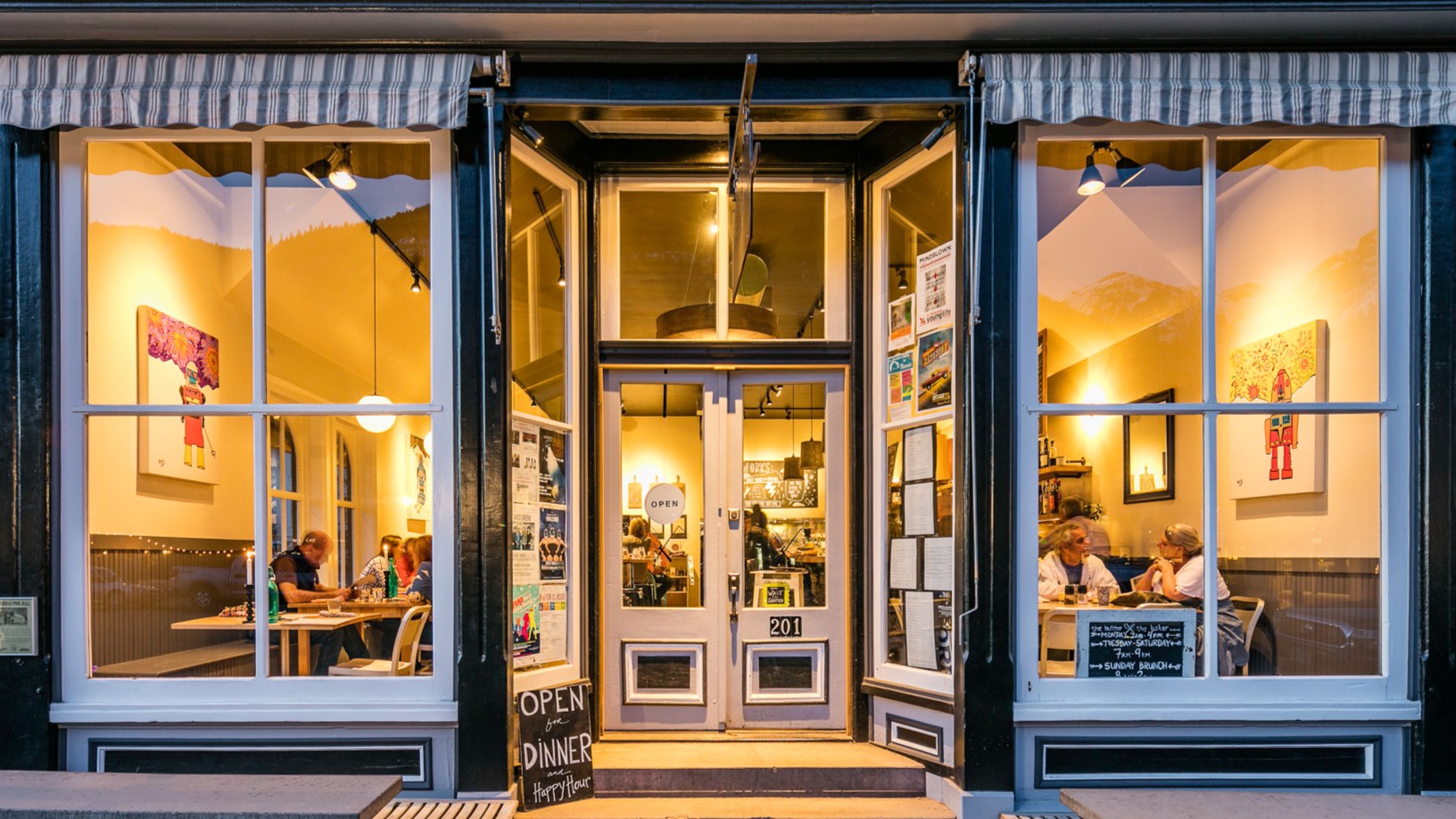 The Butcher & Baker features handmade, local and organic food for breakfast, lunch and take out. Fresh baked goods are made on the premises, and they have a simple daily breakfast menu and lunch offerings that range from sandwiches and salads to pizza or ever-revolving daily specials. The deli case holds a variety of prepared choices that can be packaged to take home for dinner. The menu changes daily.